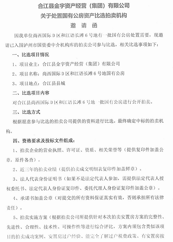關(guān)于金宇公司處置國(guó)有公房資產(chǎn)比選拍賣機(jī)構(gòu)的公告