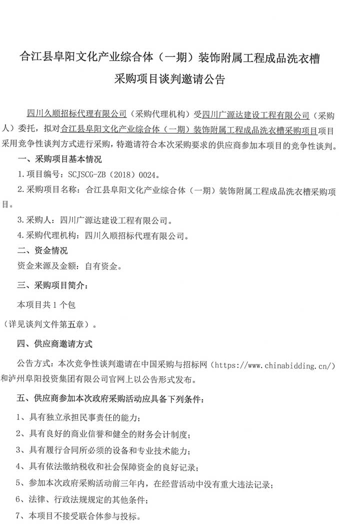 合江縣阜陽文化產(chǎn)業(yè)綜合體(一期)裝飾附屬工程成品洗衣槽 采購項(xiàng)目談判邀請(qǐng)公告.doc
