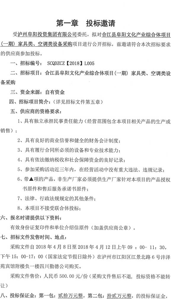 投標邀請:合江縣阜陽文化產(chǎn)業(yè)綜合體(一期)項目家具類、空調類設備采購
