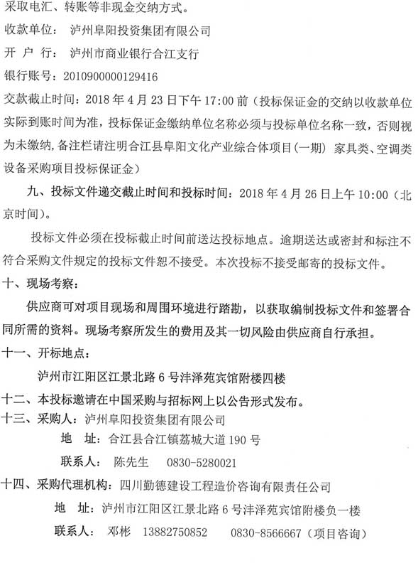 投標邀請:合江縣阜陽文化產業(yè)綜合體(一期)項目家具類、空調類設備采購