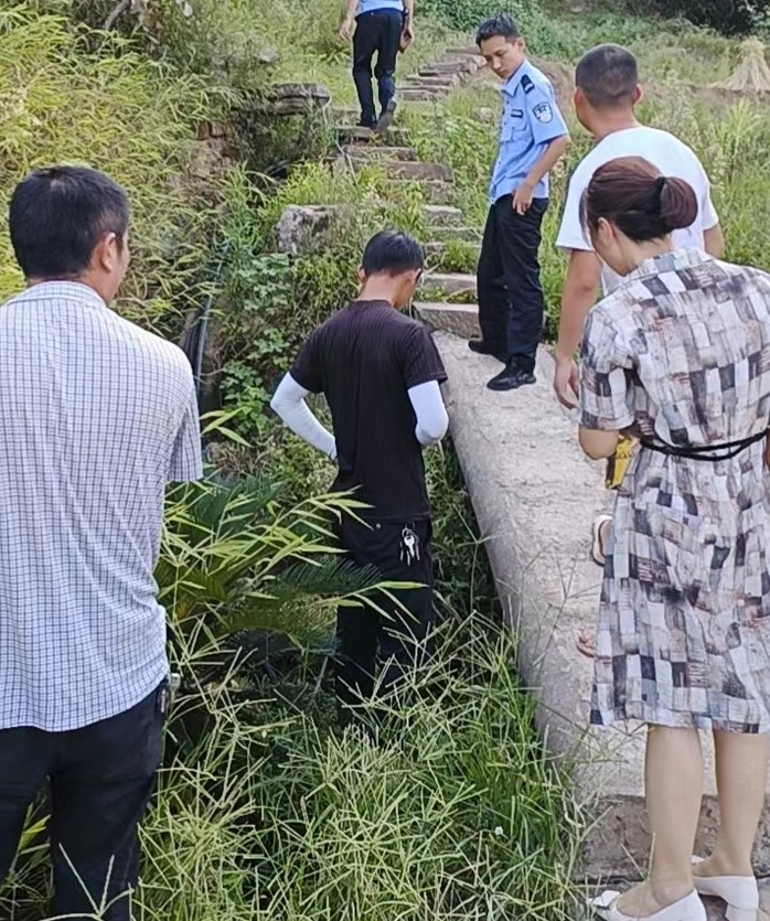 8 月 16 日雙橋水站協(xié)同大橋鎮(zhèn)派出所調查供水管網(wǎng)損壞現(xiàn)場、堅決杜絕私拉亂接和人為損壞
