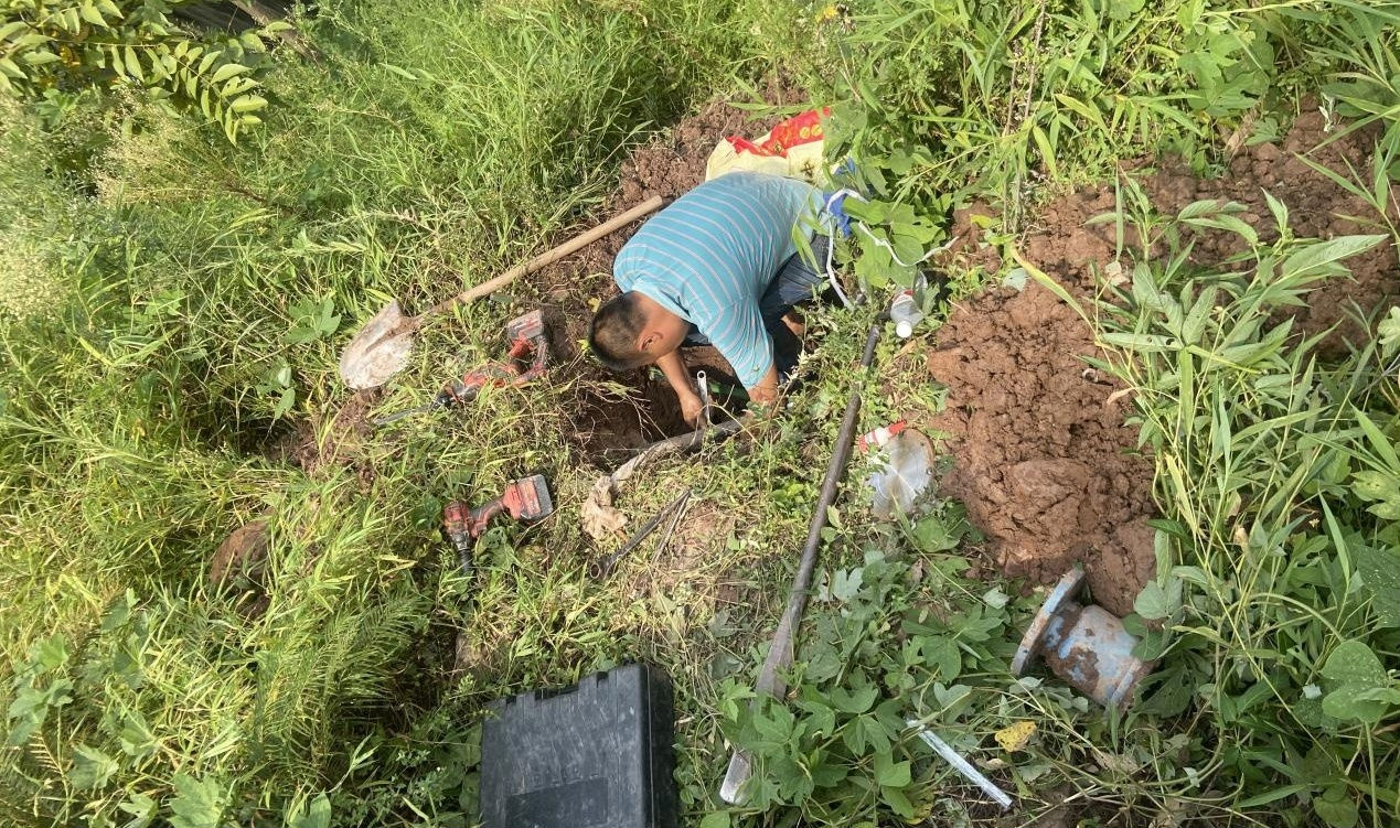 供水中心負責人劉世江、 一線員工共同檢查真龍鎮(zhèn)武民村供 水管線是否存在漏水情況,確保武民村供水正常