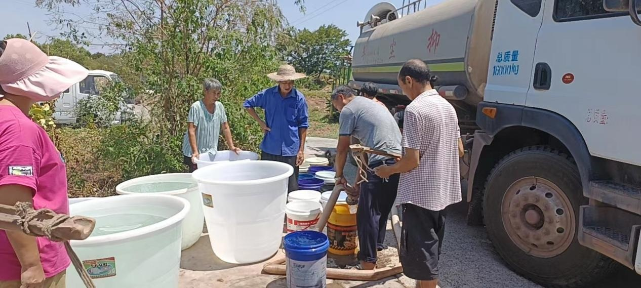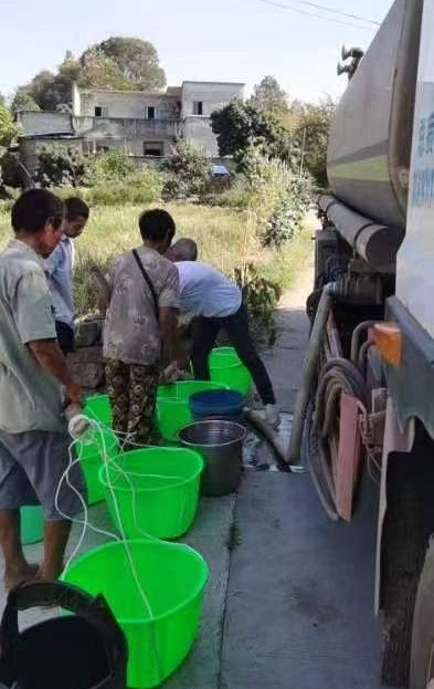 8 月 21 日江北片負責人任椿汲組織一線員工對白米鎮(zhèn)向陽村進行送水服務