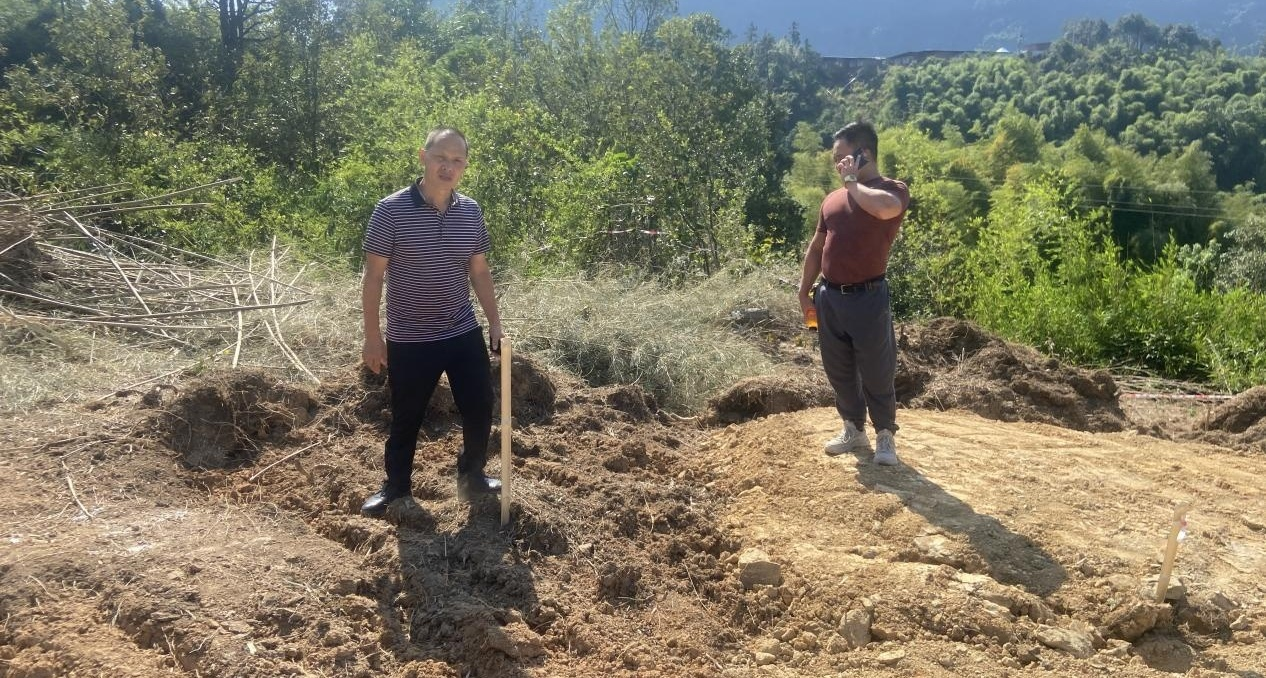 鳳鳴片區(qū)負責人陳裕寧會同水務局、 設計單位確定鳳鳴鎮(zhèn)大 茅山供水站進廠公路