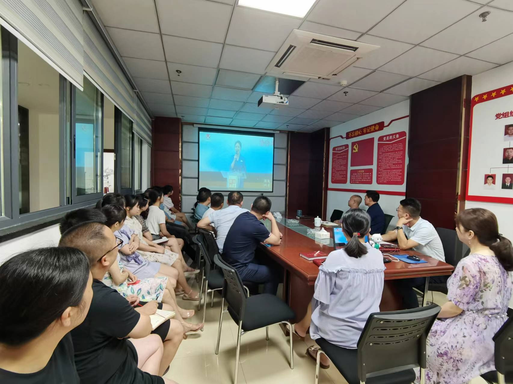 2022 年 7 月 14 日 上 午 , 阜 陽 集 團 黨 委 組 織 全 體 員 工 觀 看 《 陽 光 問廉》節(jié)目,采取集中和分散相結合的形式觀看。